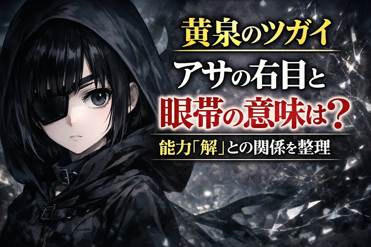 この記事では、黄泉のツガイのアサの右目と眼帯がなぜここまで印象に残るのかをたどりながら、能力「解」との関係、見えていることとまだ断定できない部分、そしてアサの不穏さがどこから来るのかまで順番に整理していく。