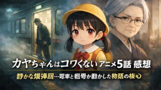 カヤちゃんはコワくない アニメ5話の感想・考察をネタバレありで解説。電車の“あの駅”の意味、祖母の正体、家族の伏線を徹底深掘り。静かな爆弾回の核心とは?